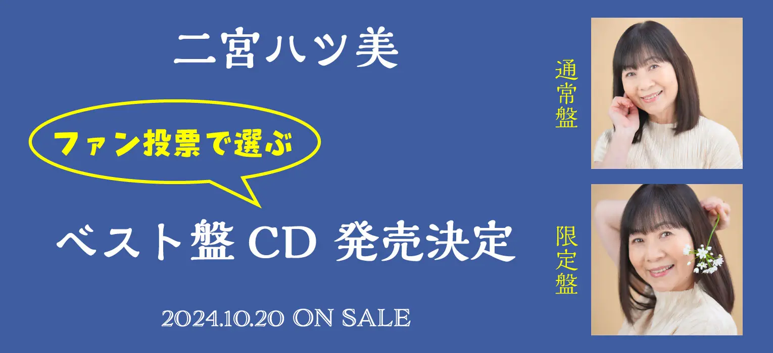 お待たせいたしました。二宮ハツ美デビュー20周年を記念したコンサートツアーが始まります。 2024年10月21日(月)から、地元・前橋市を皮切りに、全国6箇所を回ります。 実はツアーが始まるまでに、デビュー20周年を記念 […]