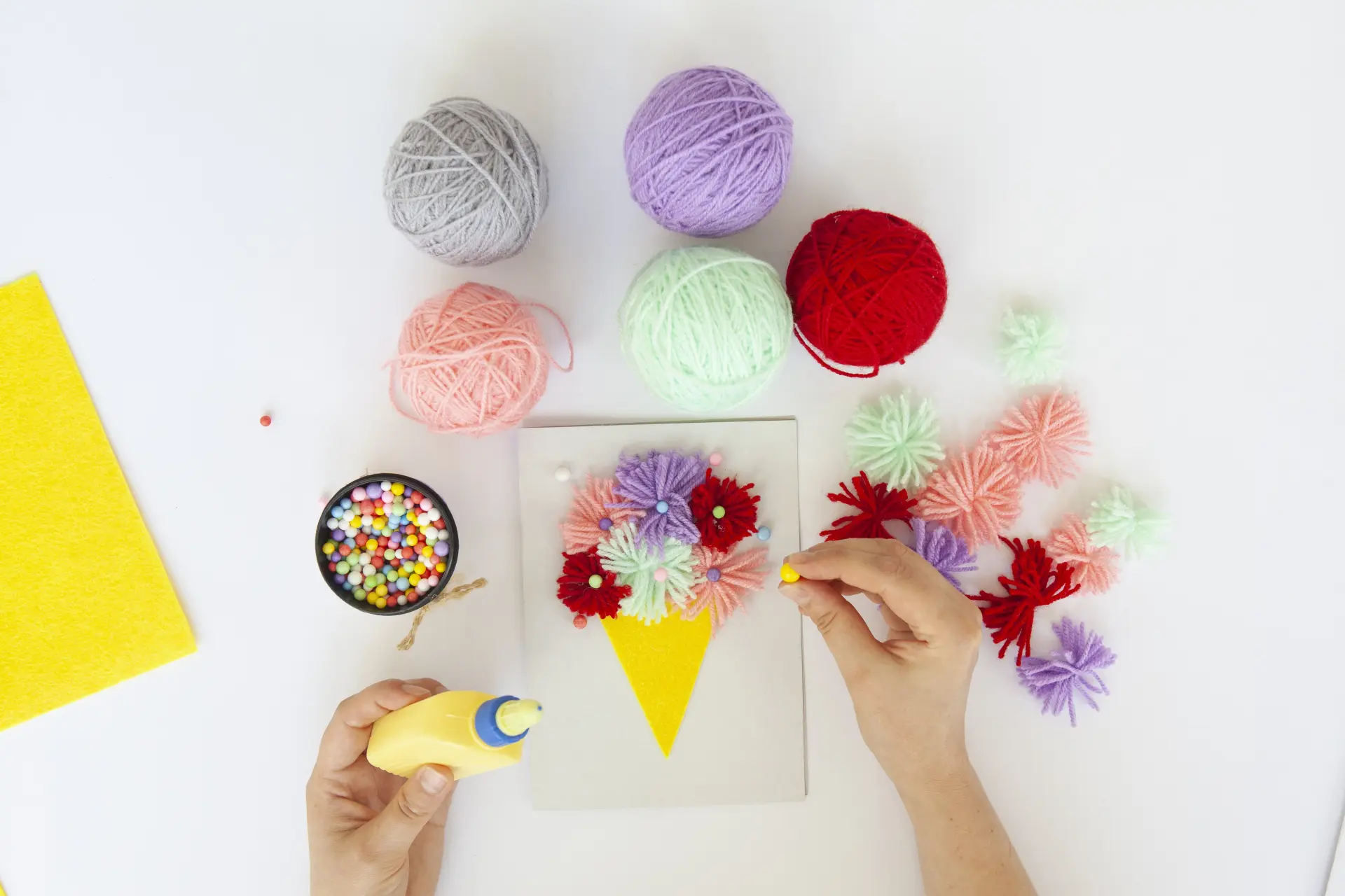 先日は毛糸を使ってメッセージカードを作りました。